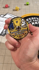 Every edition of "Theater of the Hammed" includes a make-your-own dial project page, but this special edition dial is for judges or players who want their own pre-made, high-quality version. The dial artwork was inked by illustrator Jack Kotz, and colored by adventure author Clint Bohaty. Each dial is beautifully printed on heavy card-stock, and joined by a durable silver rivet.